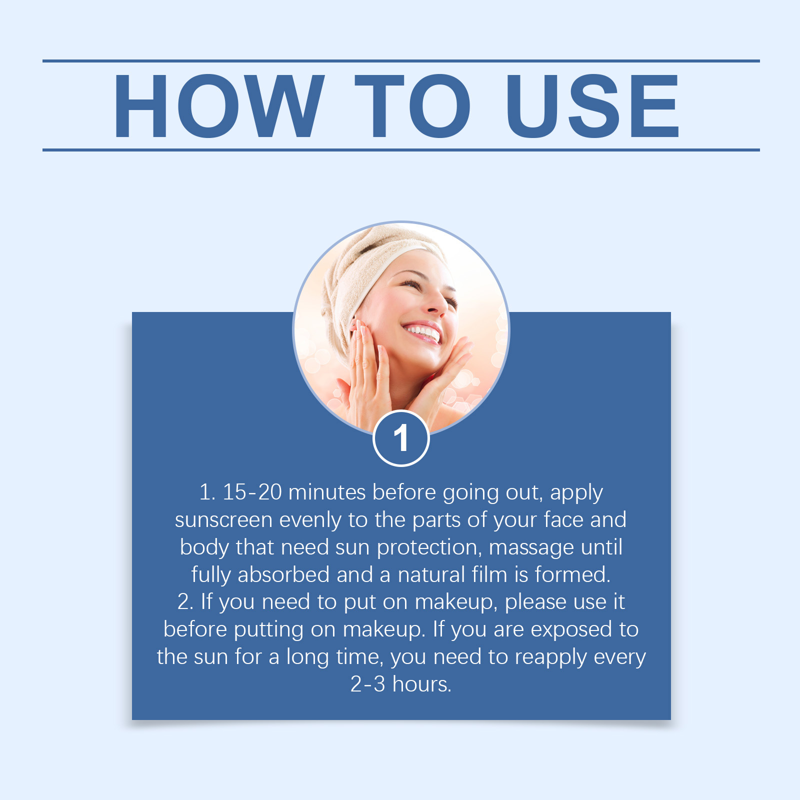 - In the morning, follow with additional sunscreen if needed for extended sun exposure